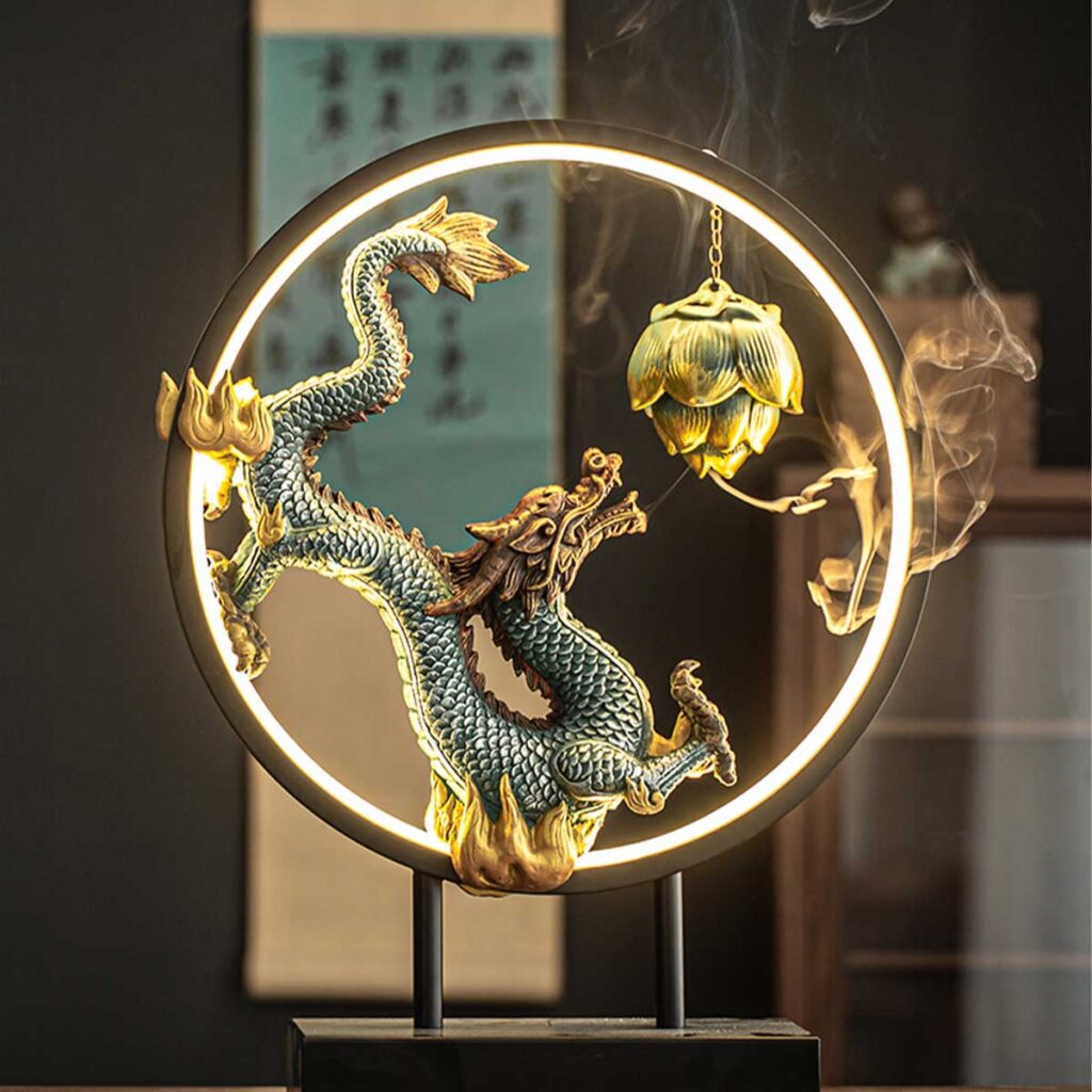 青龍のライトリングお香立て:究極のリラクゼーションとスピリチュアルな空間をあなたの家に