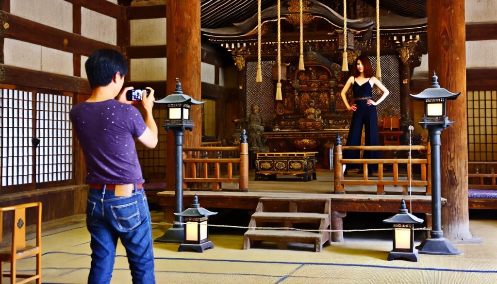 本堂内やご本尊は、信仰の対象として非常に重要な存在です。本堂内やご本尊で写真を撮る行為は、仏様への不敬とされ、お寺では厳しく禁じられている場合が多いです。特に、フラッシュを使っての撮影は、本堂内やご本尊を汚す行為と見なされるため、絶対に避けるべきです。