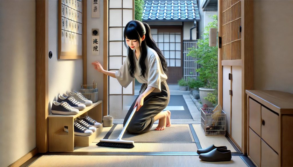 玄関の掃除をする