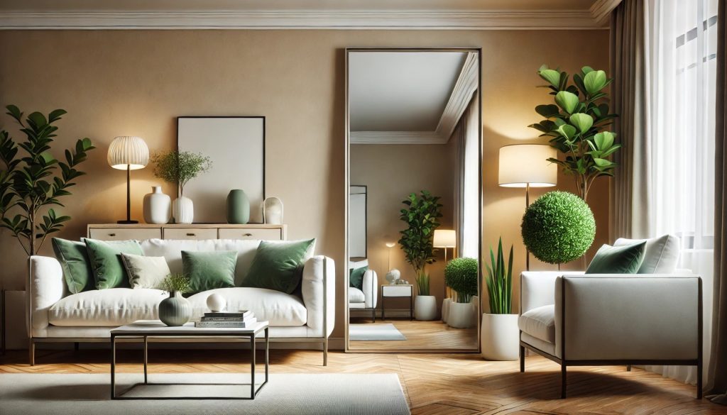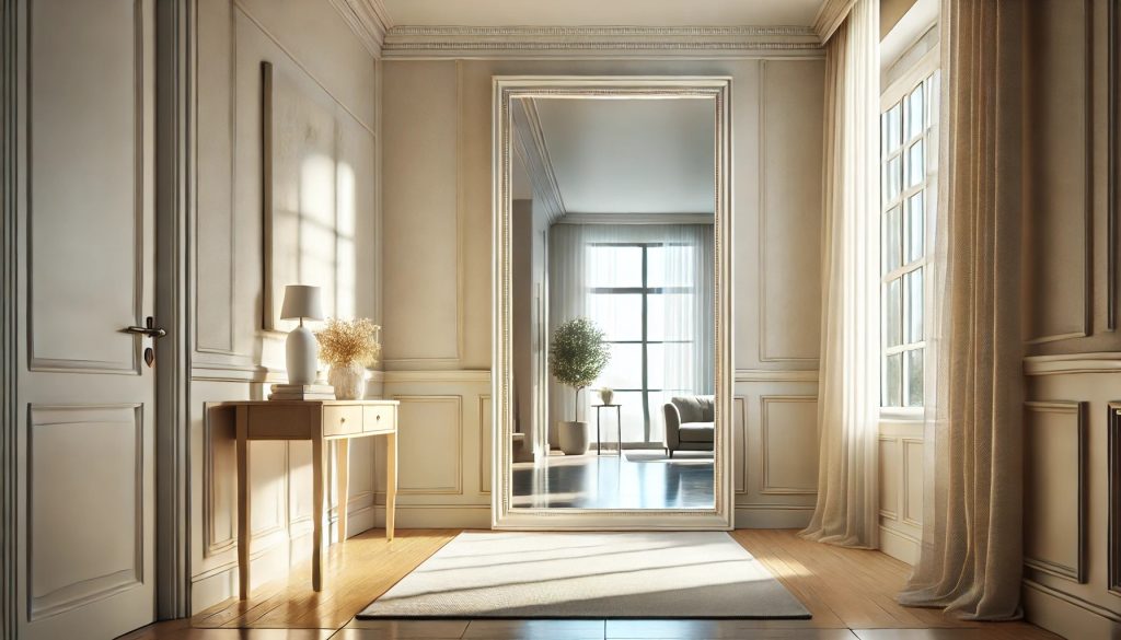 リビングルームは家族が集まり、エネルギーの中心となる場所です。ここに鏡を置くことで、エネルギーの循環が活性化されます。風水では、鏡はエネルギーを反射・増幅する力があるため、リビングに設置することで金運や発展運が高まります。特に、鏡の向きが重要です。鏡を東か南に向けることで、家族の絆を深め、仕事や金運に良い影響を与えます。