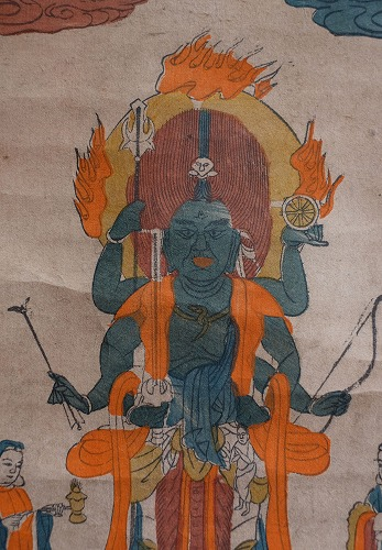 仏教では主に密教の護法善神として位置づけられ、信者を邪悪な力や病魔から守ります。一方、道教では庶民の生活に密着し、特に道教の護法神「天蓬元帥」と関連づけられています。両教派での役割の違いはあれど、その信仰の根底には人々を守護する力が共通しています。