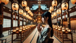 - 本堂(薬師堂)で合掌し、静かに祈る
