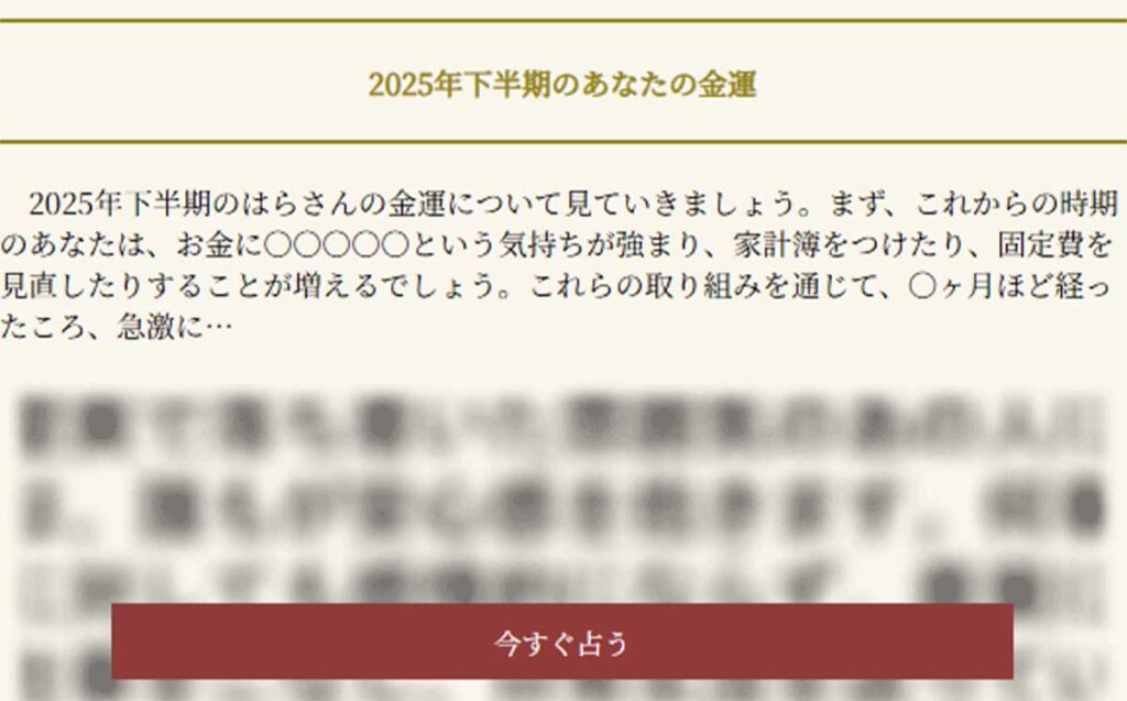 まず、鑑定結果の途中で「ここから先は有料です」といった表示は一切ありません。最後まで、あなたのためだけにまとめられた鑑定文を完全に無料で全文お届けしています。
